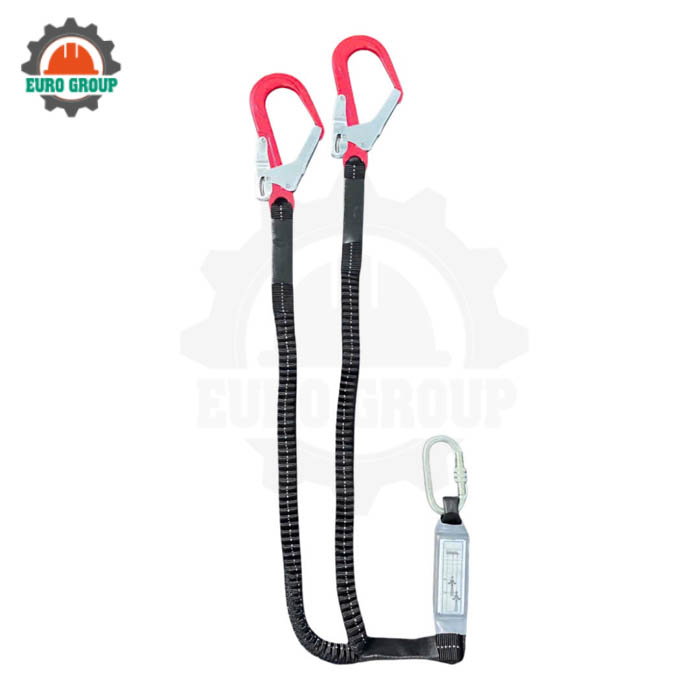 Dây đai giảm xóc CB2 sử dụng dây treo thun đàn hồi màu đen, có khả năng co giãn linh hoạt, giúp giảm lực giật khi xảy ra rơi ngã. Dây treo kết hợp khóa chữ D lớn và bộ giảm xóc màu đen, hỗ trợ hấp thụ xung lực hiệu quả.