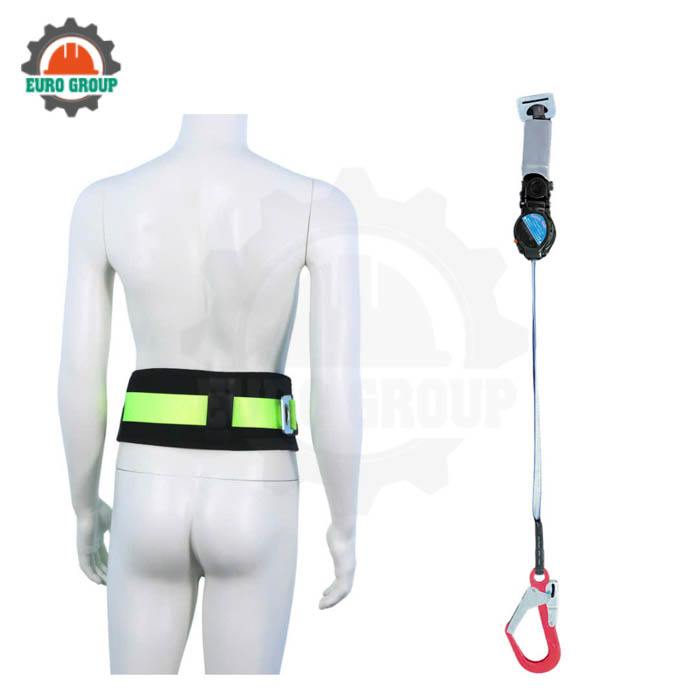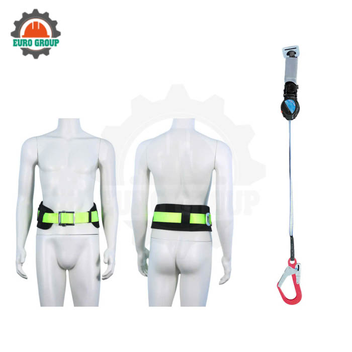Sản phẩm thuộc nhóm dây đai an toàn nịt bụng, kết hợp đai nịt bụng màu vàng chanh dễ nhận diện với hộp thu tự động, bộ giảm xóc và hệ thống móc an toàn, giúp bảo vệ người lao động tối đa khi xảy ra sự cố.