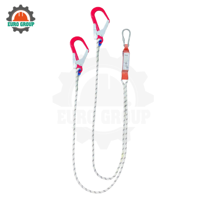 Dây đai toàn thân F8 2 móc sắt dây thừng giảm xóc là thiết bị bảo hộ lao động chuyên dụng cho các công việc trên cao yêu cầu mức độ an toàn cao. Sản phẩm tích hợp bộ giảm xóc giúp hấp thụ lực rơi, hạn chế chấn thương và hỗ trợ người lao động di chuyển linh hoạt hơn.